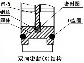 1、精密铸造整体式结构阀体,不用经过机械加工直接在阀体内嵌入U型橡胶条,并在U行橡胶条内设定U型钢丝条,使闸板套嵌在阀体内的U型橡胶圈中间的两侧摩擦上下启闭运动,大大的延长了橡胶密封刀闸阀的使用寿命,并且达到双向密封。